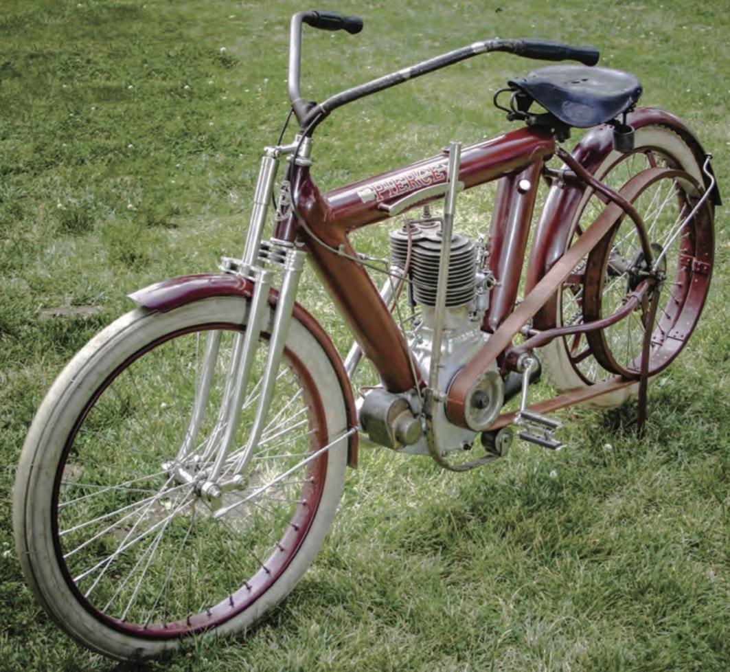 Pierce One-Cylinder, 1-cyl. SV, ? cu.in., 1-speed (optional 2-speed), ?hp/?rpm, magneto ignition, chain drive, ? mph, $200