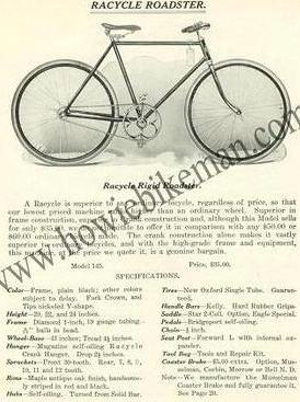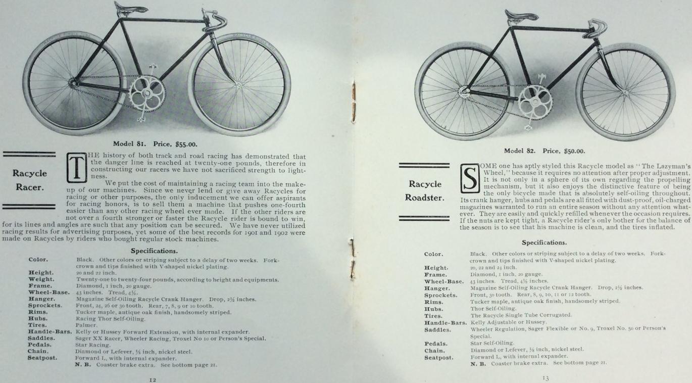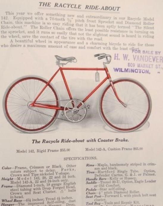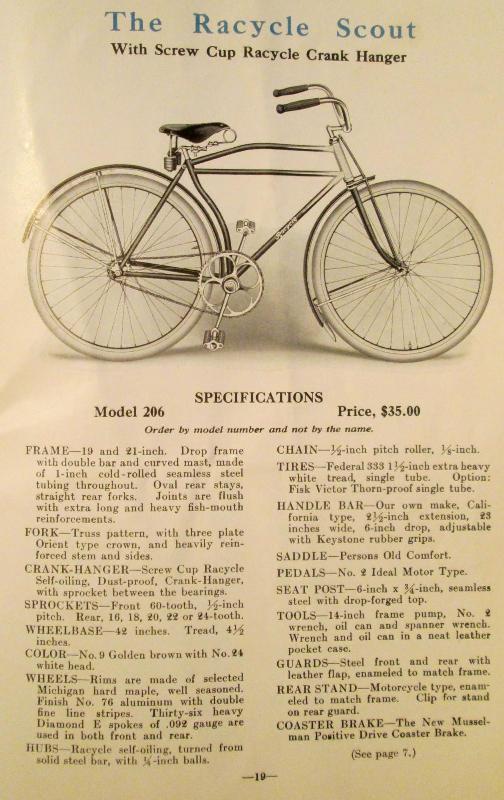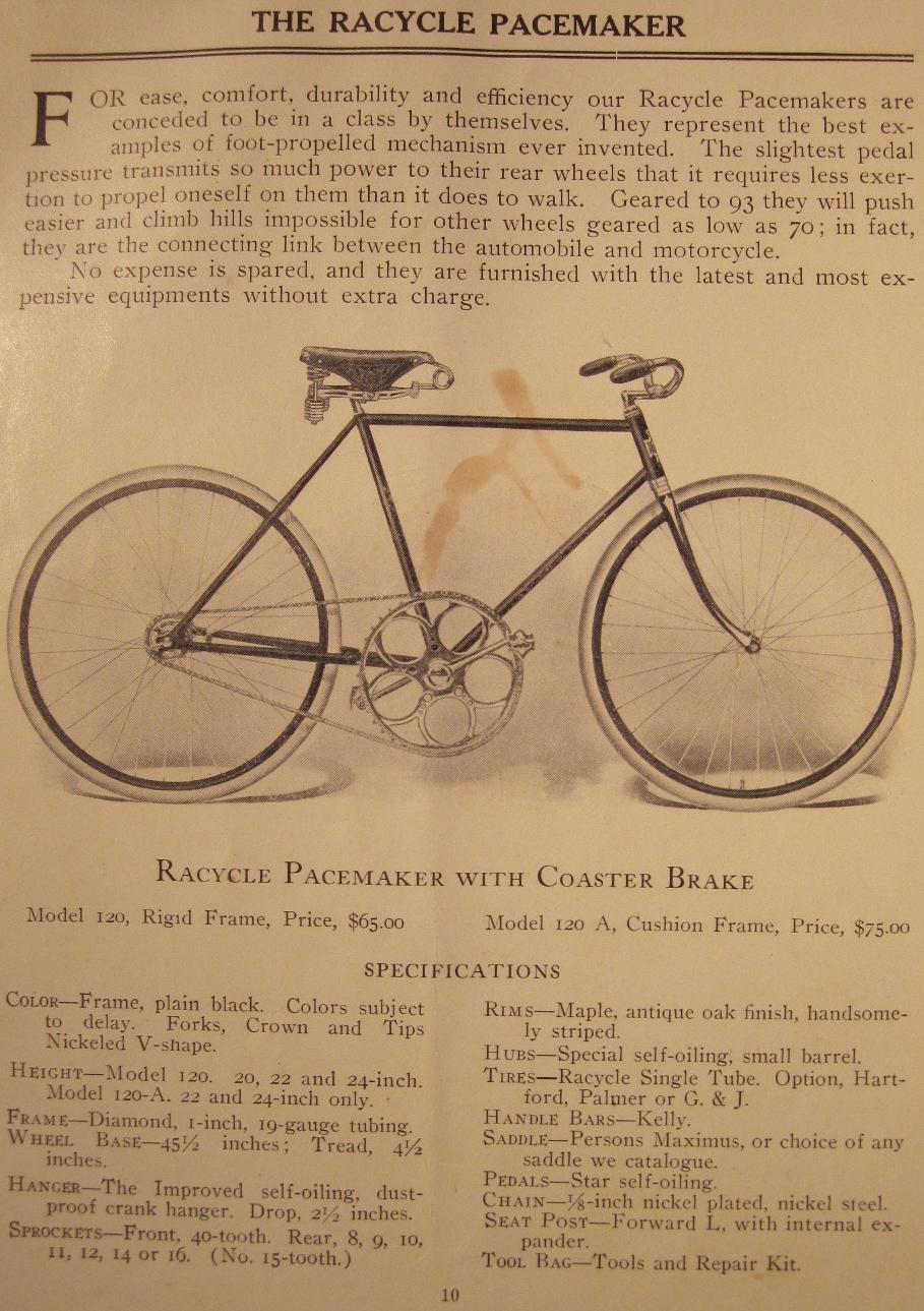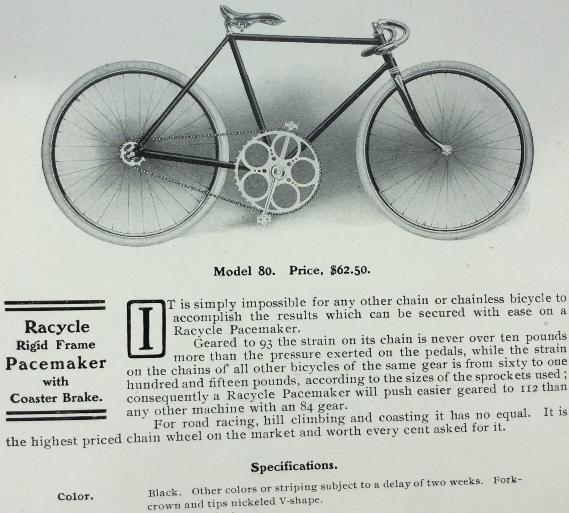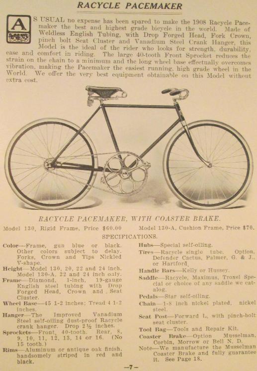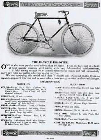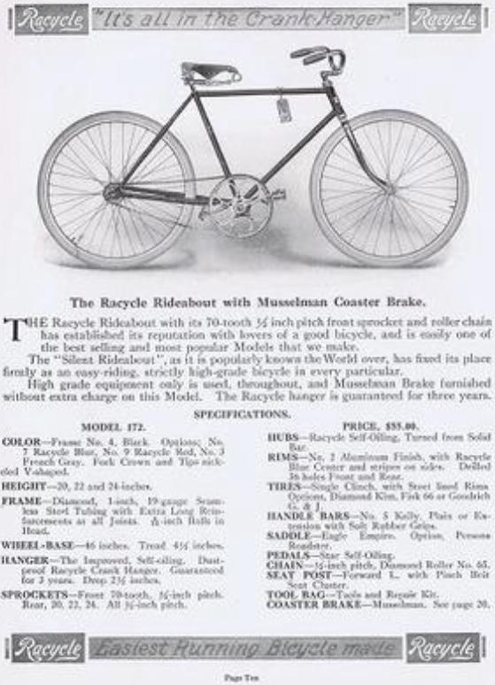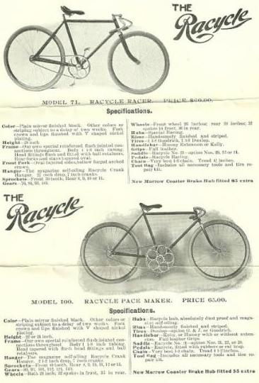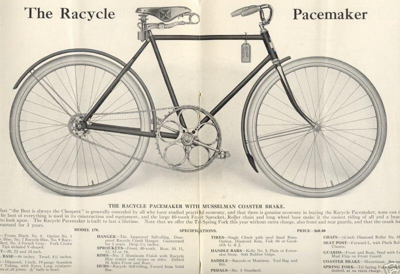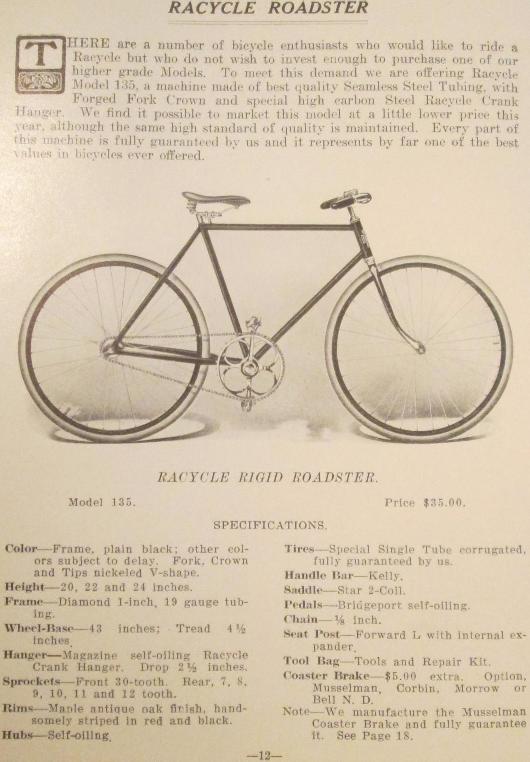 normal for Racycle, but I doubt the rest of this bike is 1909. No more data on 1909 Racycle.