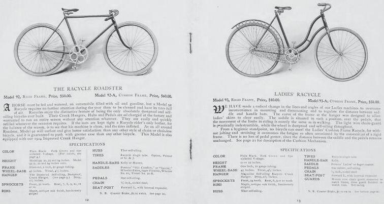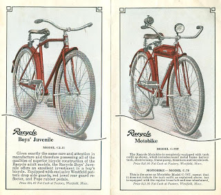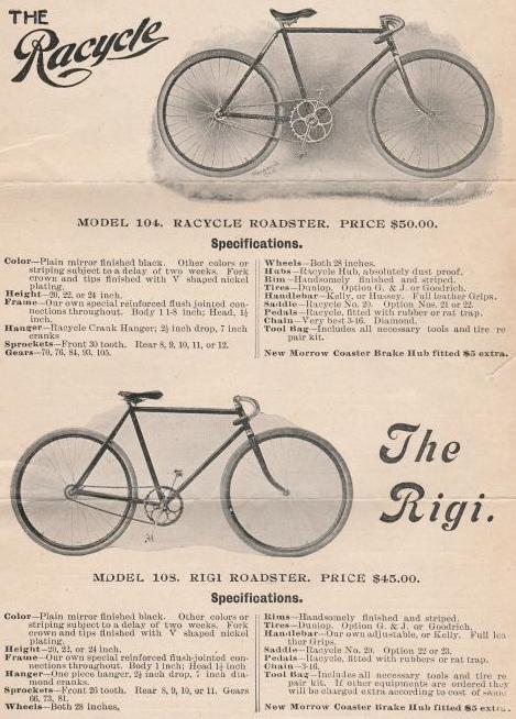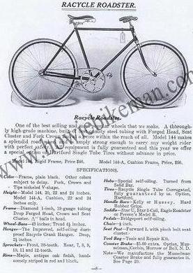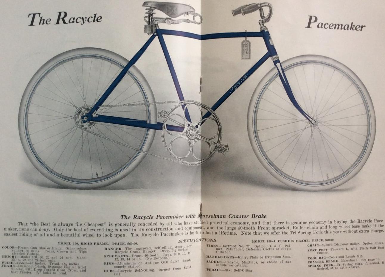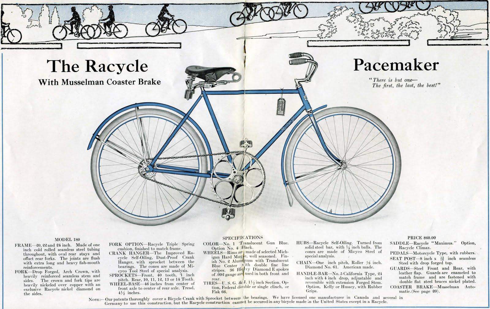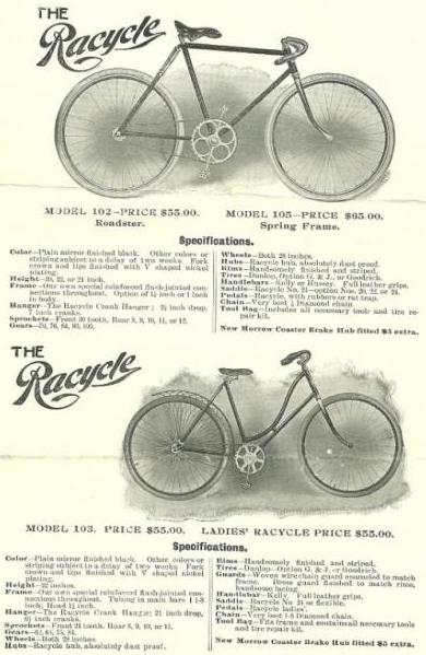 In 1924 Racycle name has been bought and used on bicycles by the Westfield Mfg. Co., Westfield, Massachusetts (1924-1925, perhaps later).