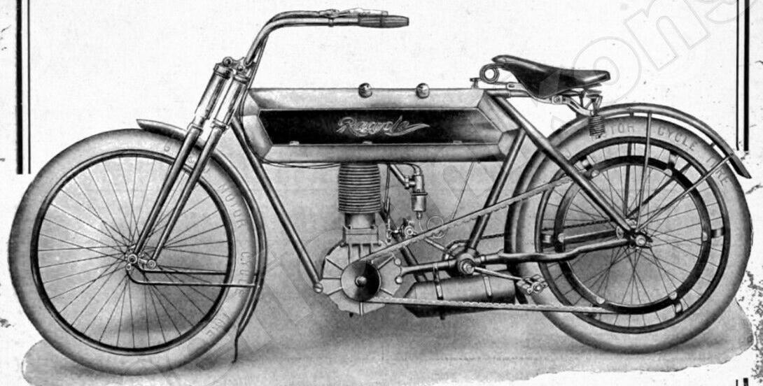 1905 (Advertised as Moto-Racycle, but simply Racycle name on the motorcycle)