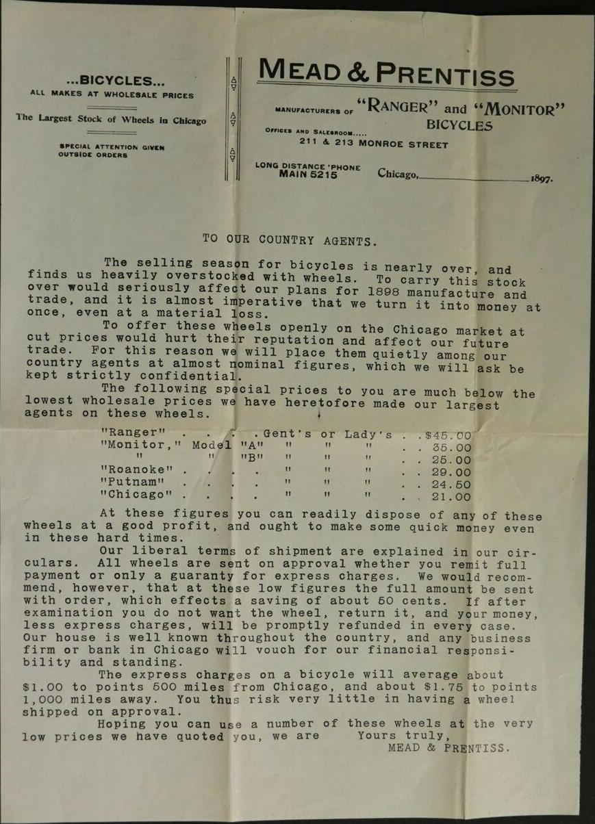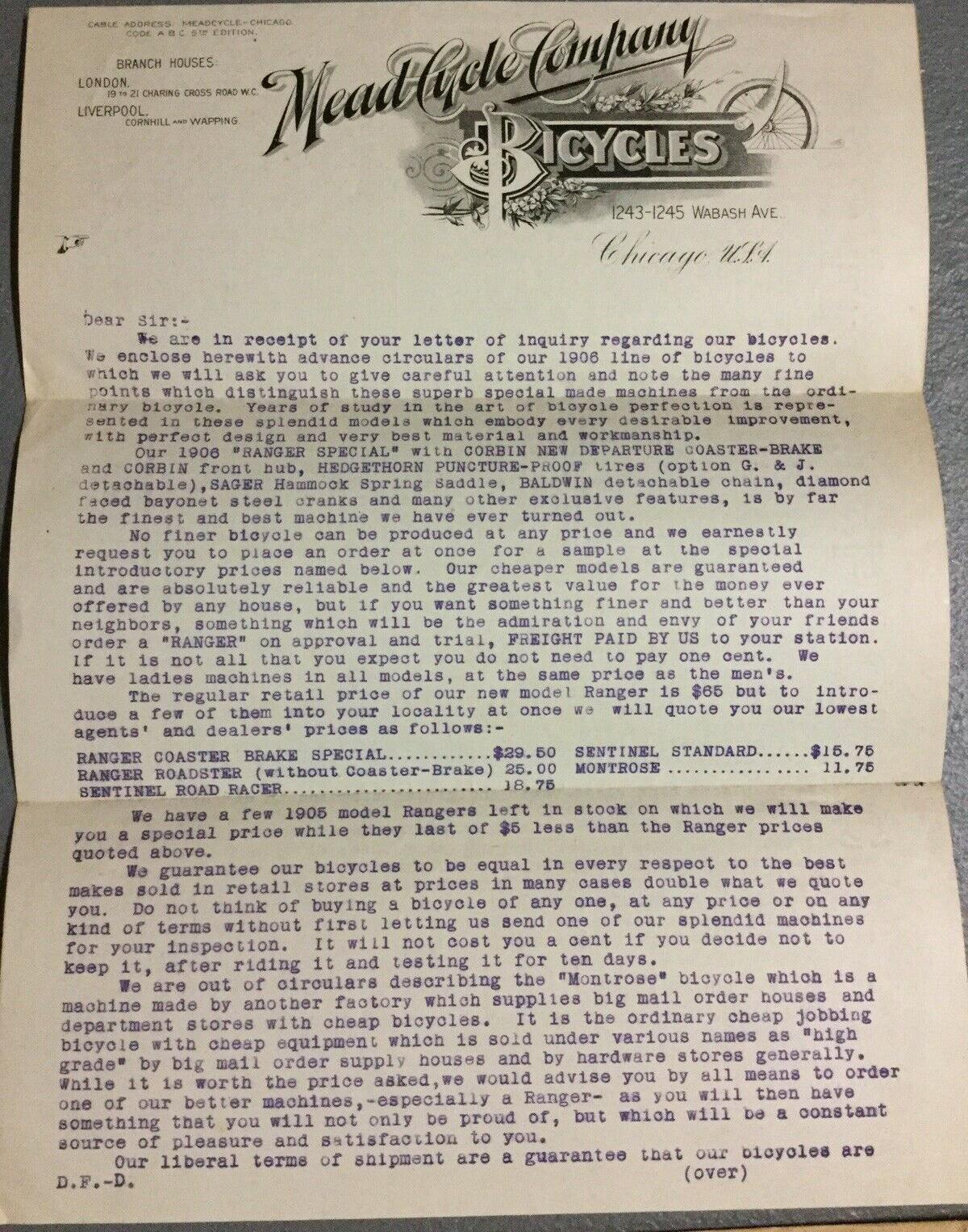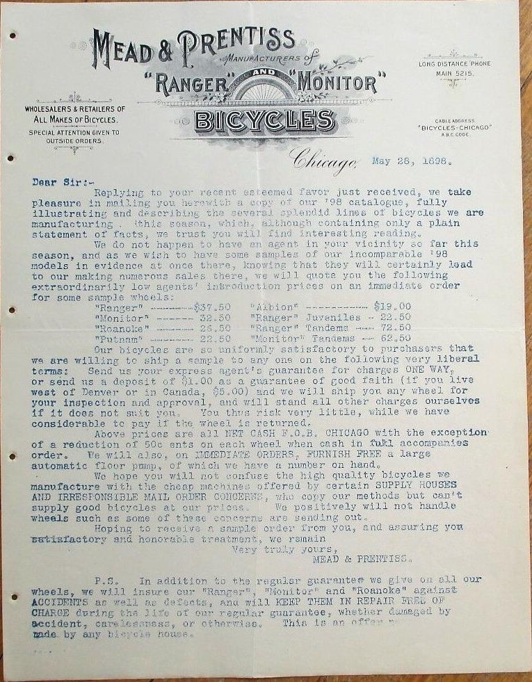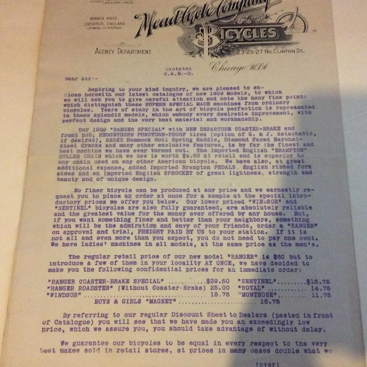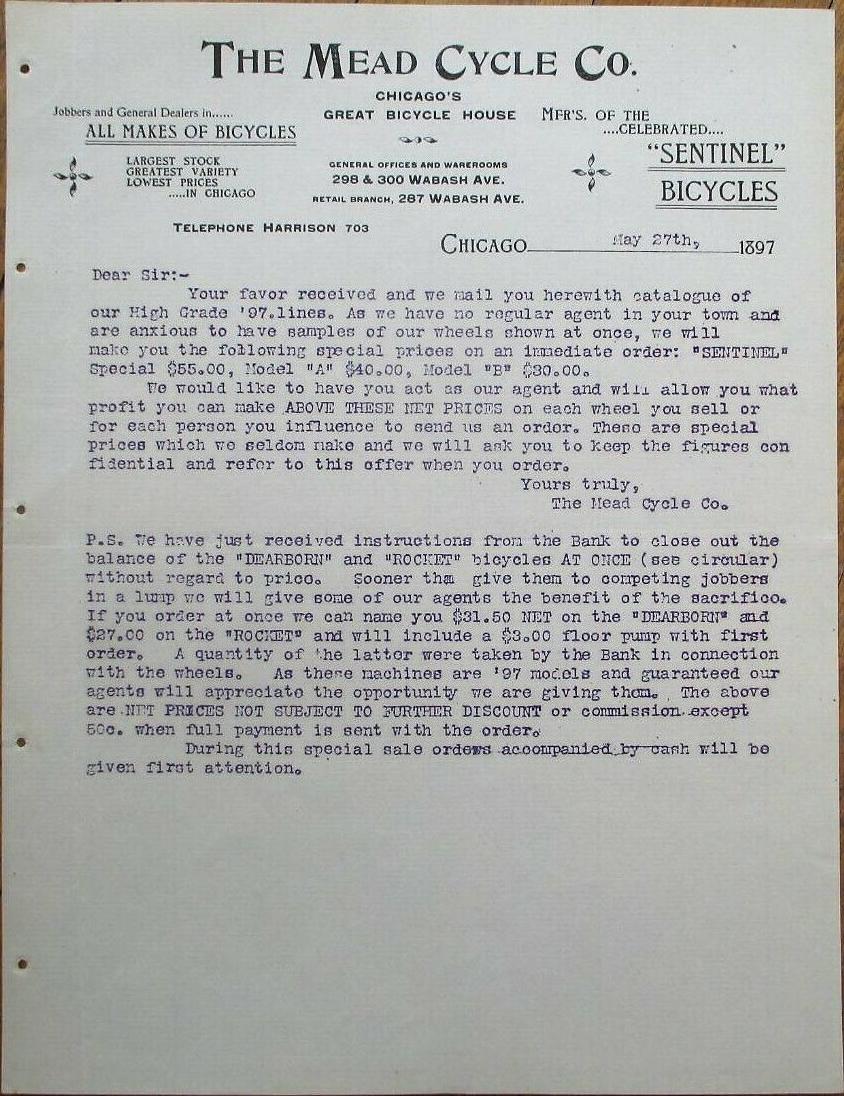 1897 The Mead Cycle Co. letter with price list, 176k