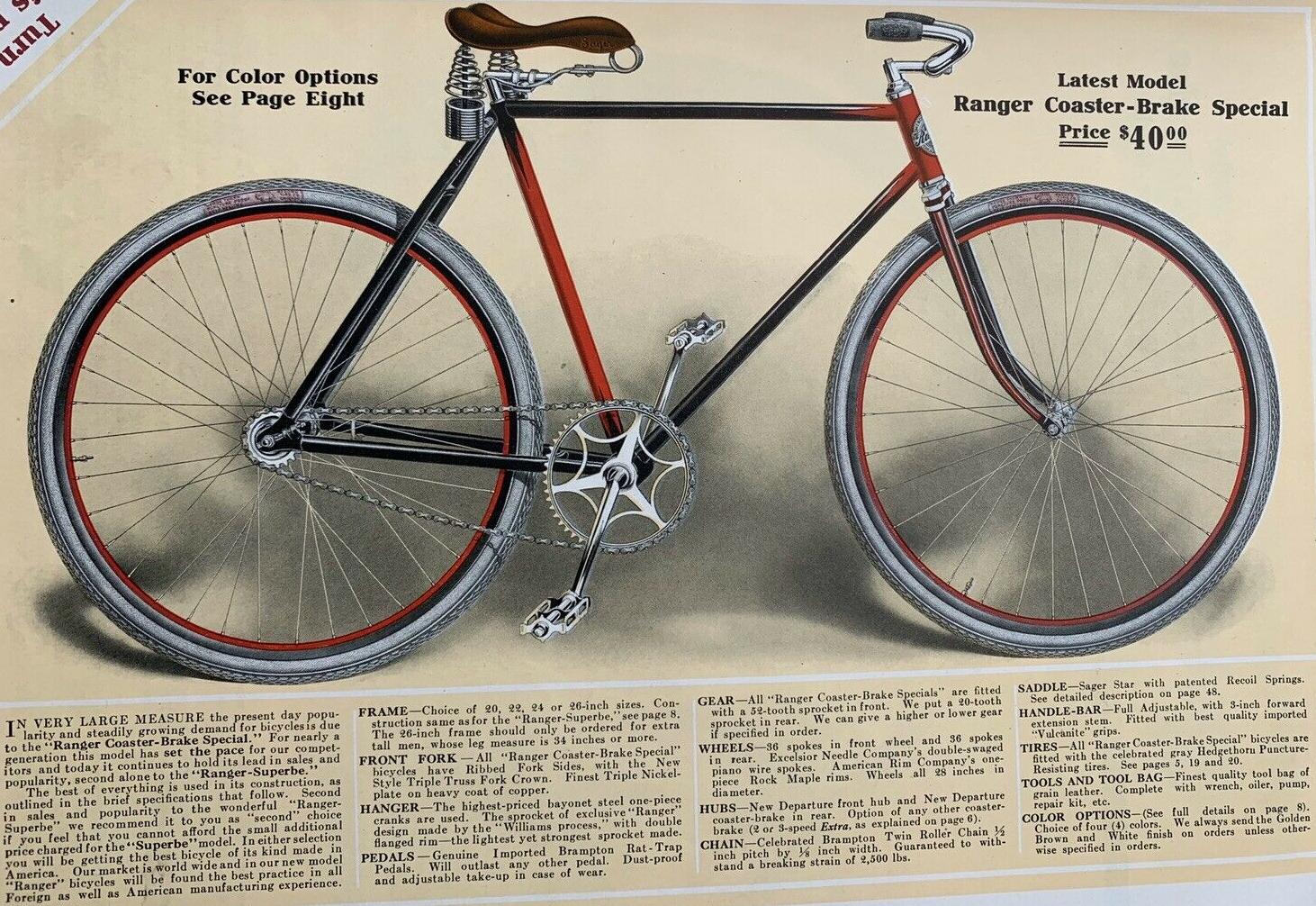 1914 Ranger Superbe, Double-Bar Frame and data of Coaster-Brake Special, 123k poster