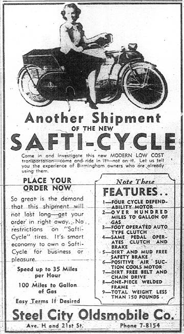 Oldtimer picture gallery. Motorcycles. Safticycle scooter. Only pre-1945 here.