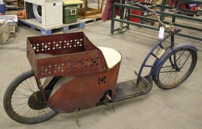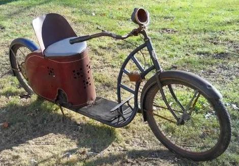 1941-1942 Safticycle, 4-stroke aircooled 1-cyl. L-head motor, 1,5hp Briggs & Stratton NP motor, 6,28 cu.in. (103,0cc), bore 2", stroke 2", 35mph, $?