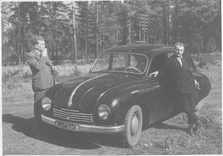 The shot is dated of 1950, near Malahovka (Moscow region). On the left is Konstantin's grandfather - Nikolai Sergejevich Breus, on that time - general manager of the "Mospishchestroi" trust. On the right shauffeur of the car stays. The car belonged to the trust.