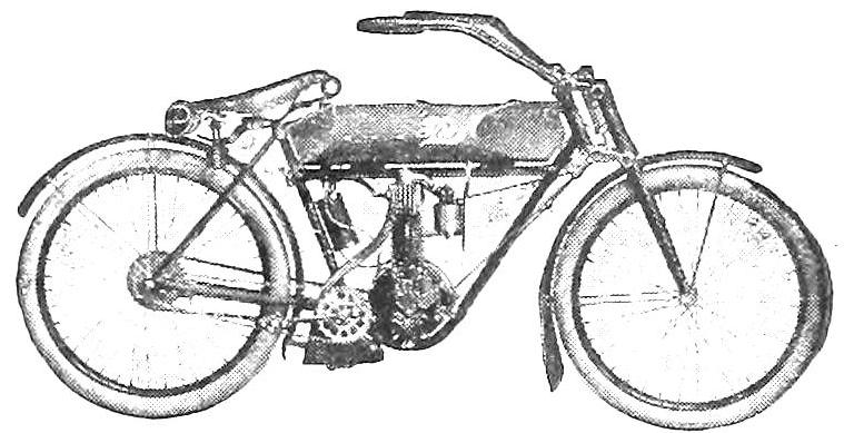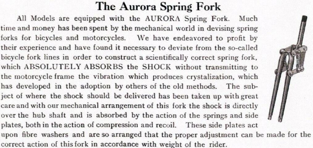 bore 25/8", stroke 31/4", magneto ignition, "V" belt, 1-speed, Aurora spring fork, ? mph, $300