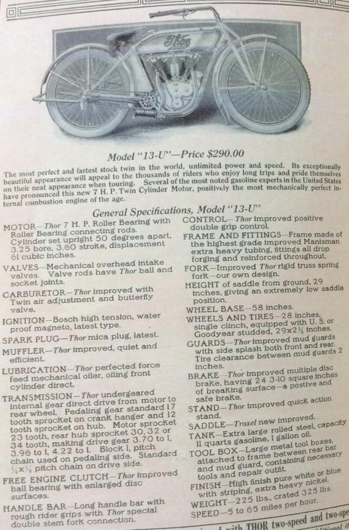 1913 Thor 13U, V2-cyl. 7HP IOE, 59.73 cu.in. (978.8cc),