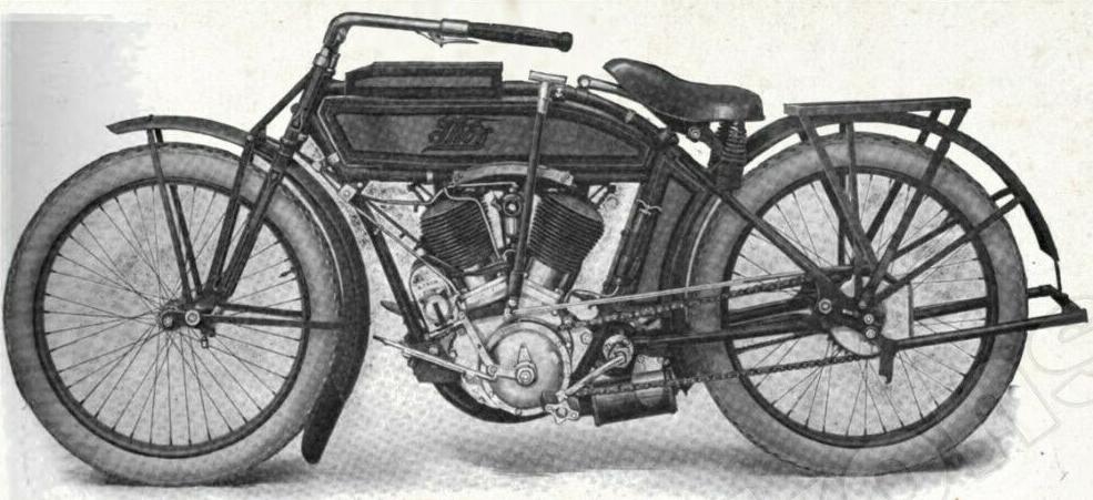 1916 (new: 3-speed transmission, U and A models: new rear stand, chain cover, slightly changed luggage rack, long horizontal footboards)